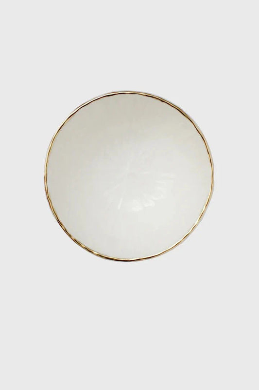 Handmade White Porcelain Bowl with Gold Rim. Relief Collection