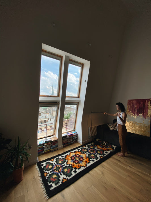 Handwoven Thin Rug with Traditional Carpathian Pattern