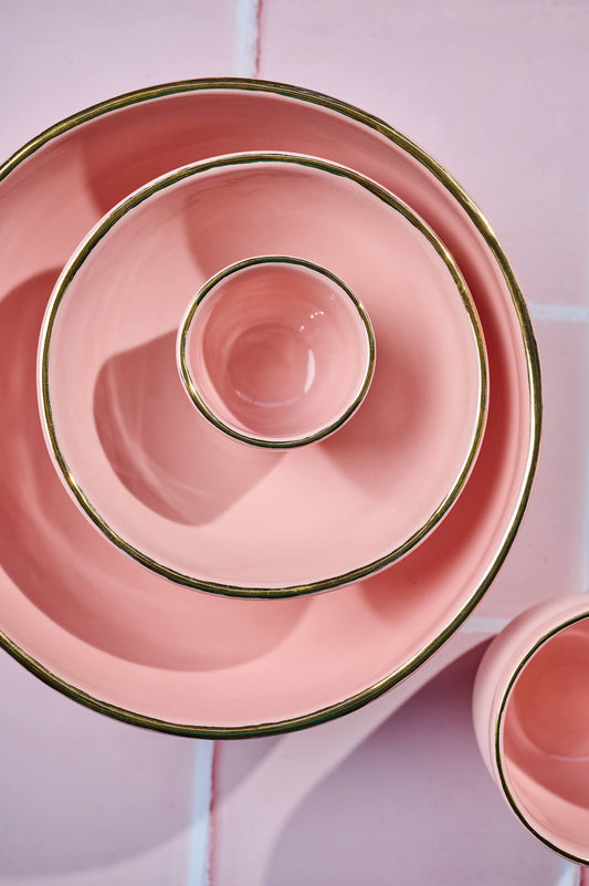 Handmade Porcelain Salad Serving Bowl with Gold Rim. Powder Pink