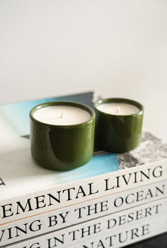 Handmade Porcelain Espresso Cup with Gold Rim. Green