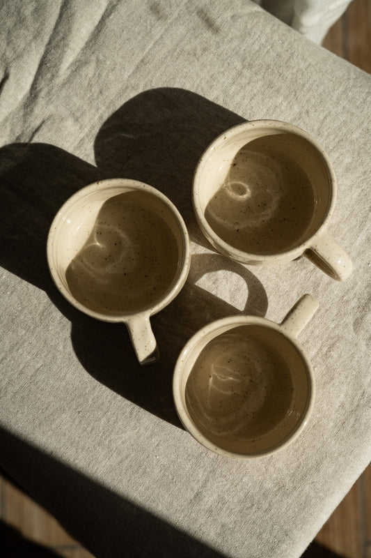 Handmade Stoneware Mug — White Sand Speckled