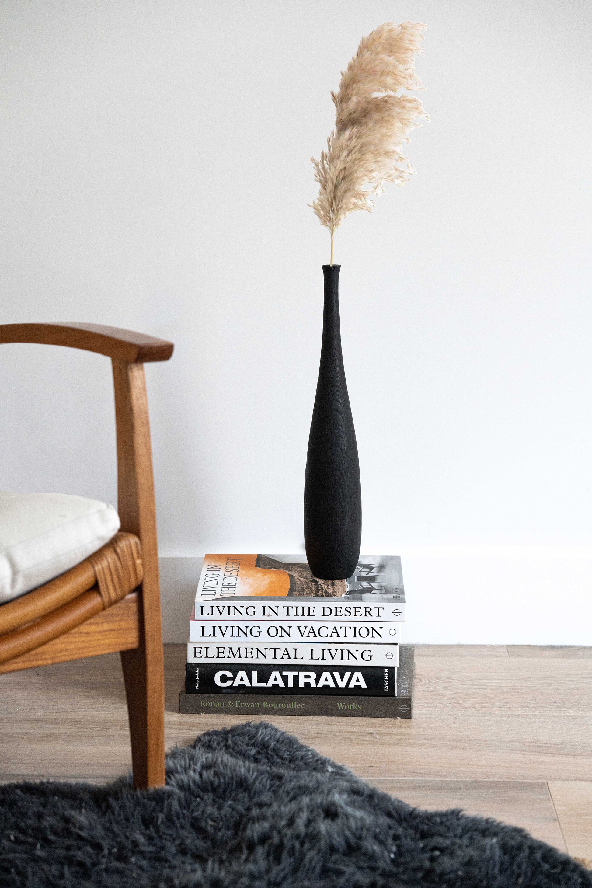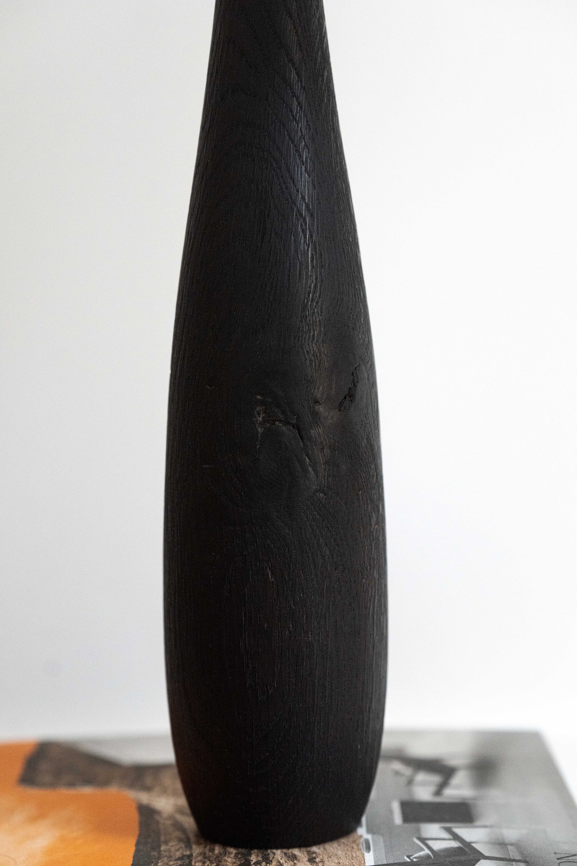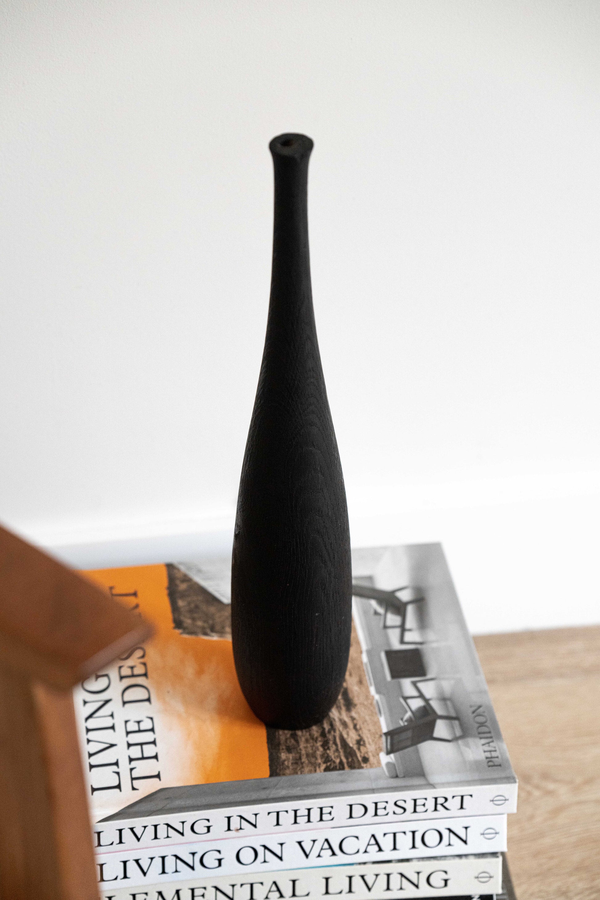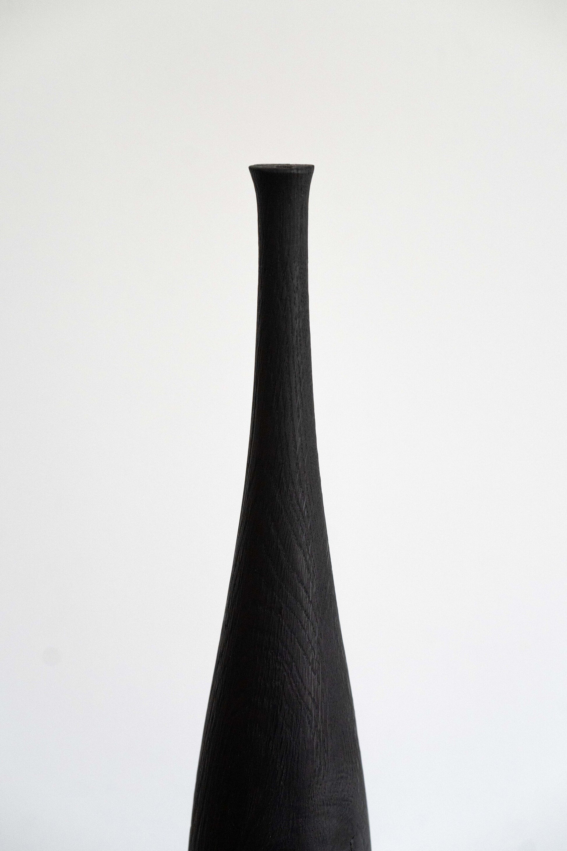 With sharp shoulders and a long neck, our take on the traditional bottle shape looks rustic and modern. The vase is deftly carved out of oak wood, and charred to showcase the natural texture of the wood and enhances the vase's striking silhouette. Display on its own or paired with another charred vase.