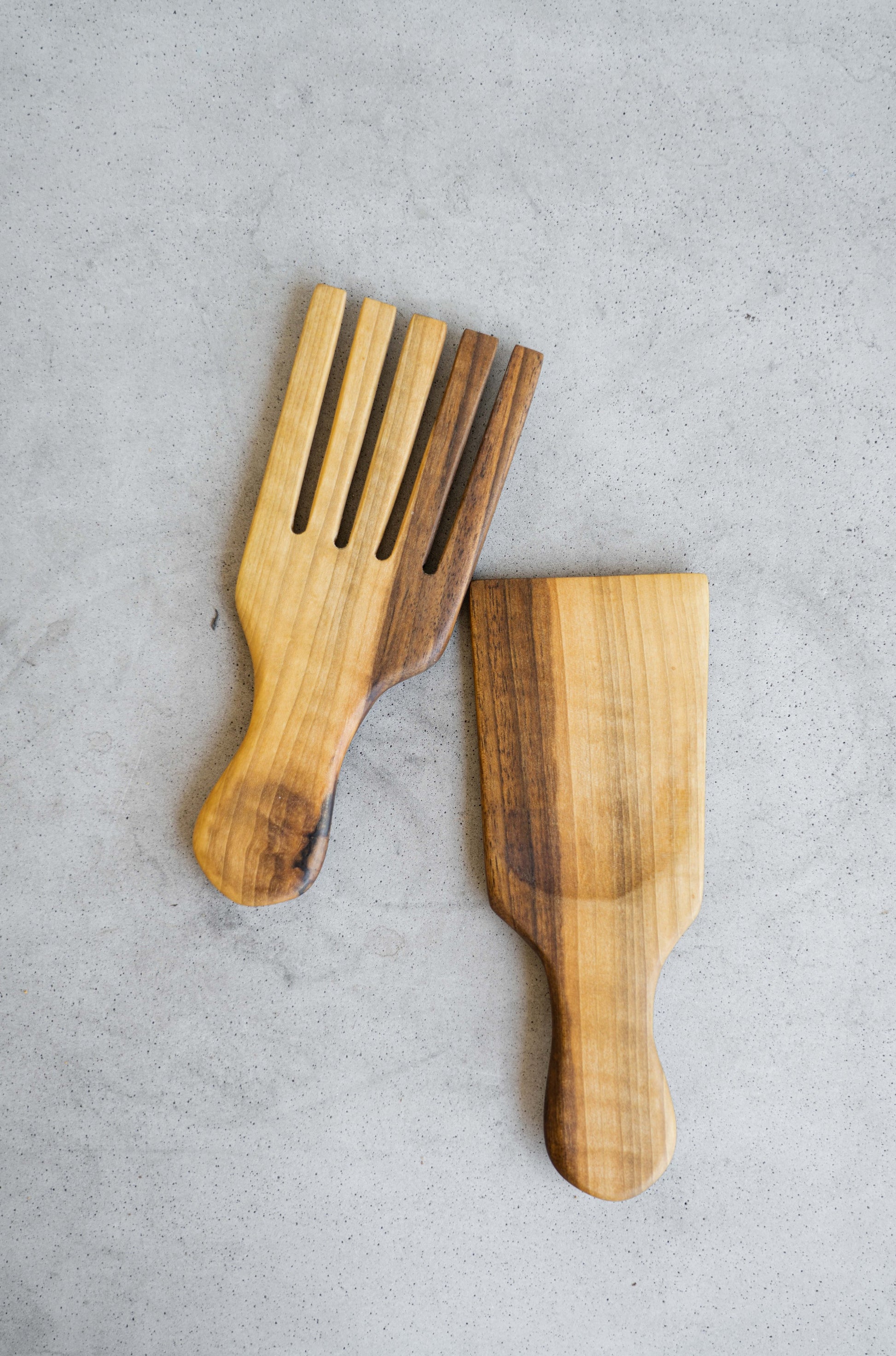 Crafted with precision from walnut wood, these exquisite salad servers feature generously sized, meticulously shaped straight heads and polished handles. This set includes two servers, available in walnut wood option.