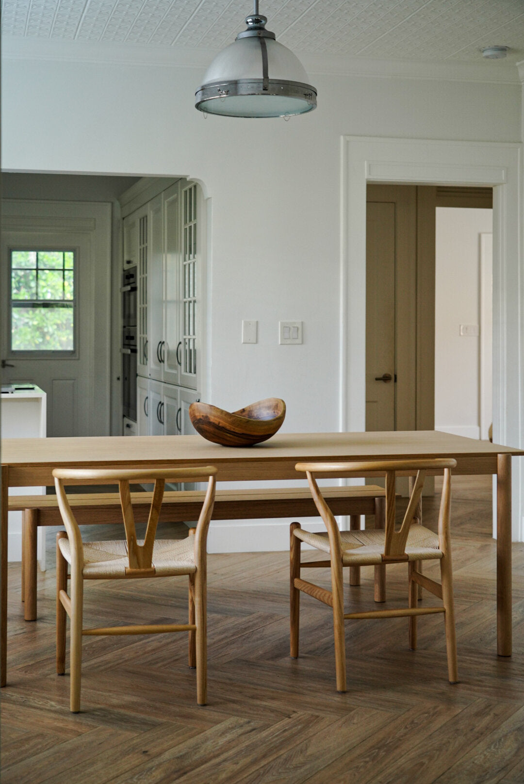This large wood bowl will become a centerpiece on your table and a perfect vessel for all your fruits or vegetables in the kitchen. Hand-carved from one solid piece of walnut wood, the shape continues the wooden rings and puts the age and the beauty of the natural material in focus. To finish the bowl, the wood is sanded and given an oil finish. Due to the characteristics of wood, cracking may occur. Each bowl is unique.