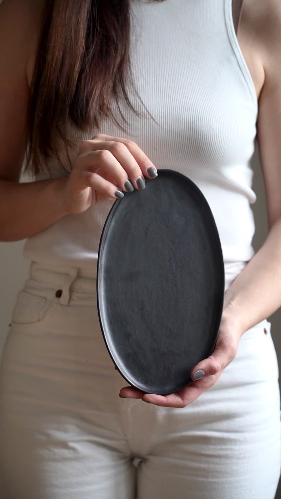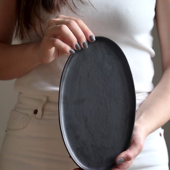 Black Matte Stoneware Oval Serving Platter