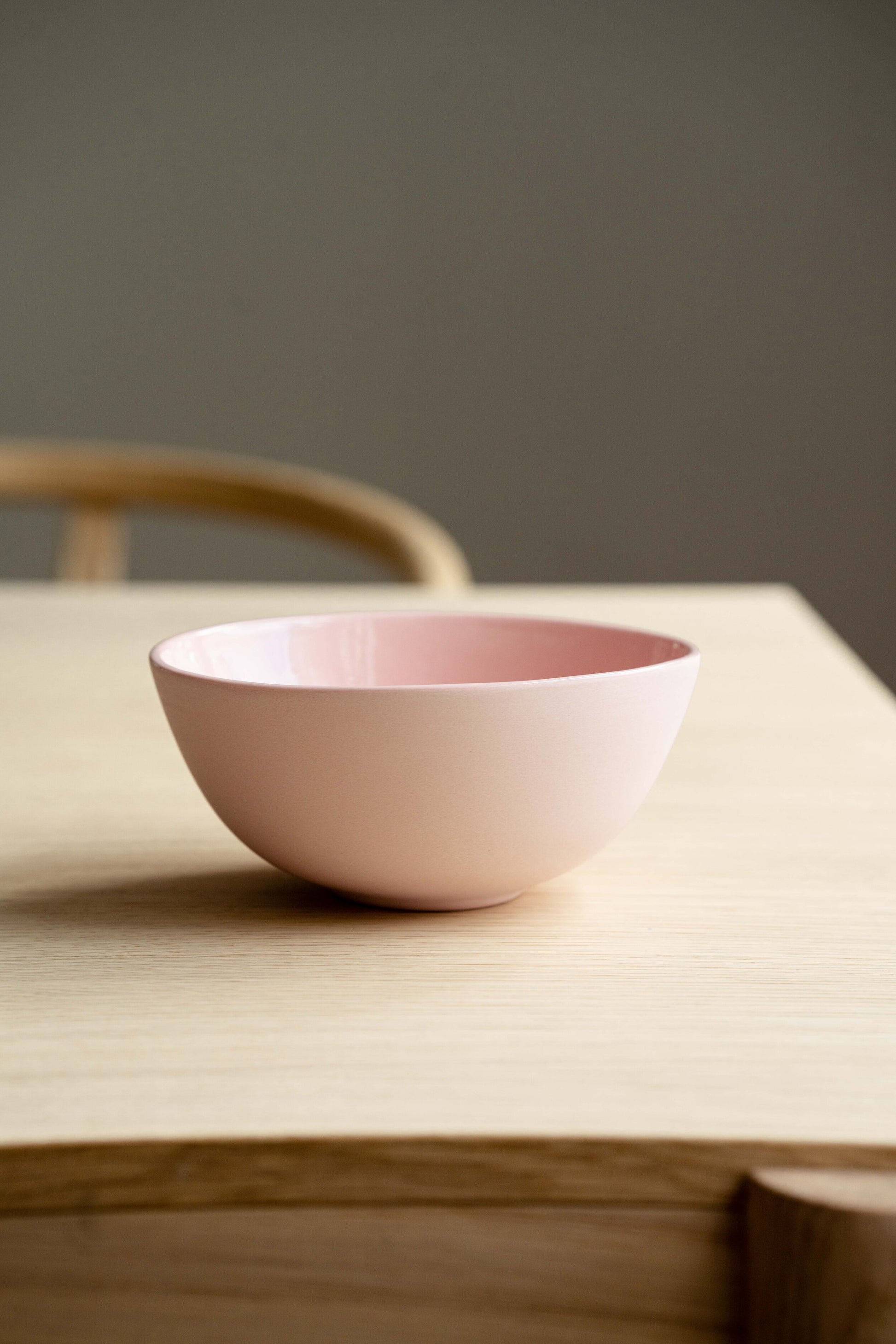 Our new handmade porcelain bowl sets the table with clean elegance. Dinnerware is glazed shiny neutral inside and smoothly polished from the outside. The beautiful powder pink color creates a soft neutral touch to your kitchen.