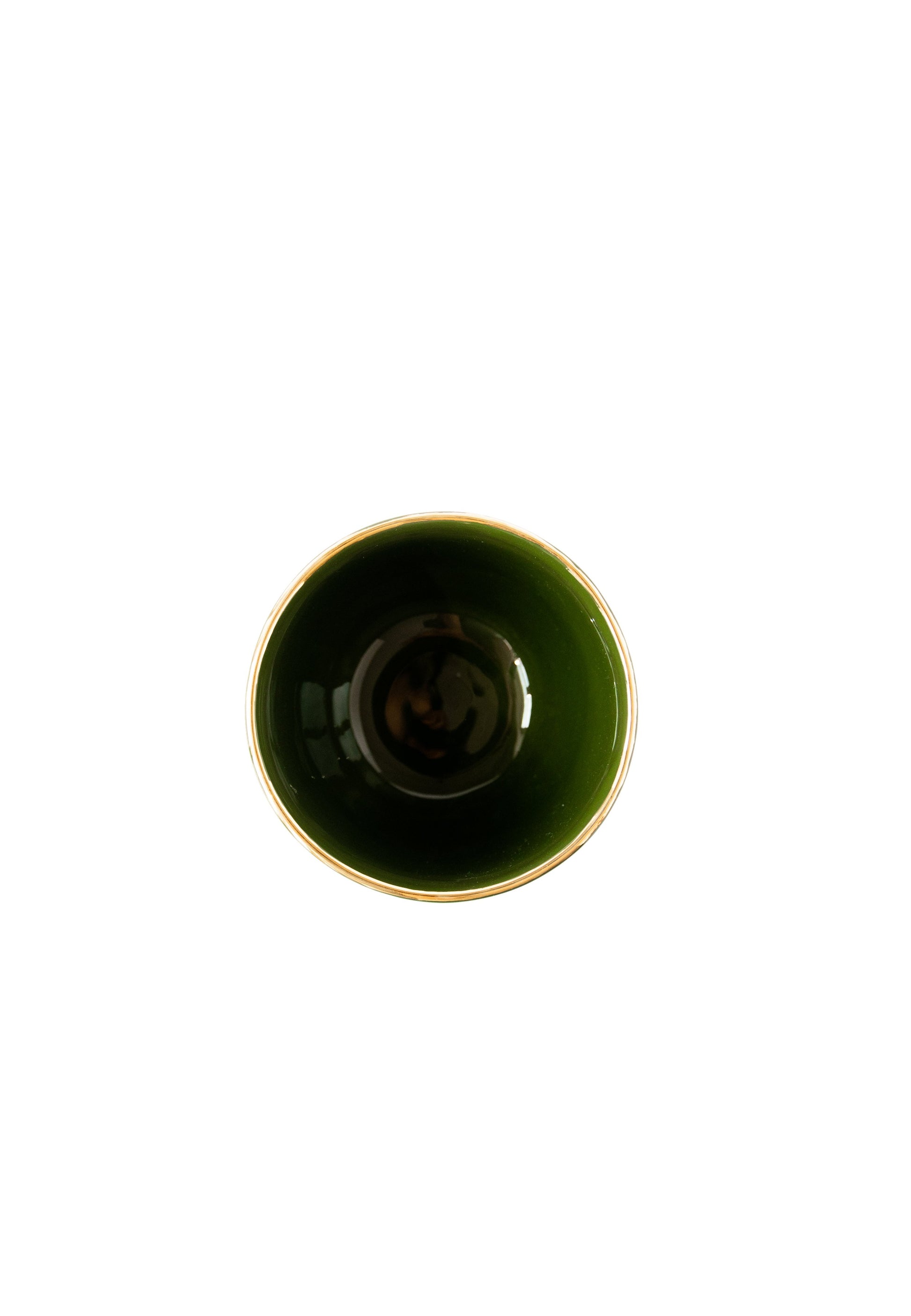 Handmade Porcelain Coffee Cup with Gold Rim. Green