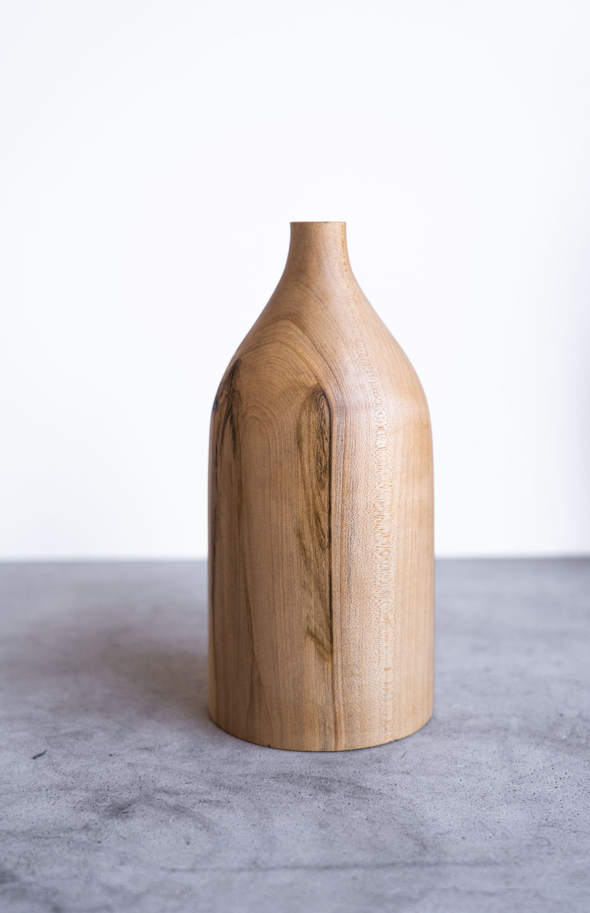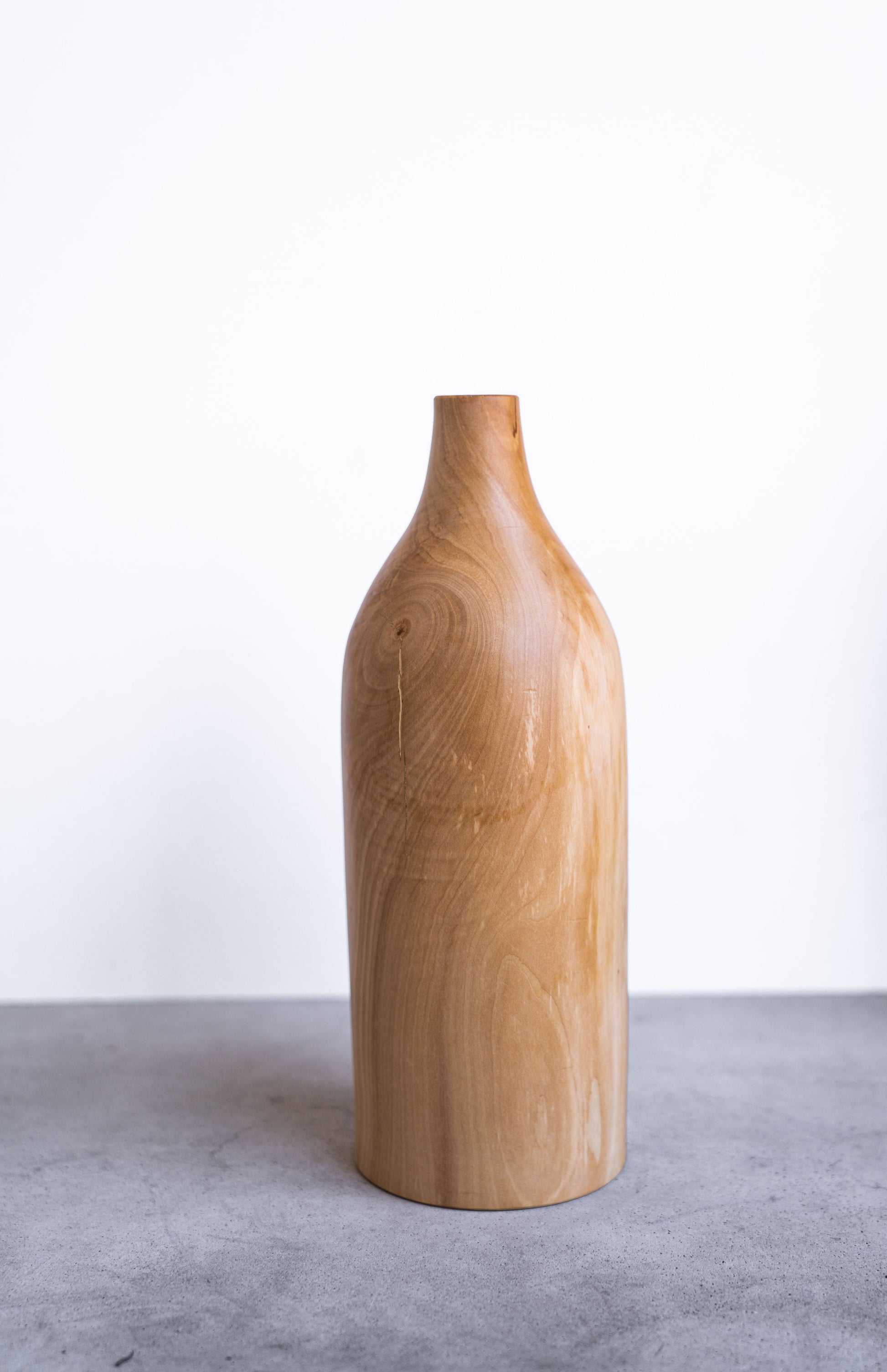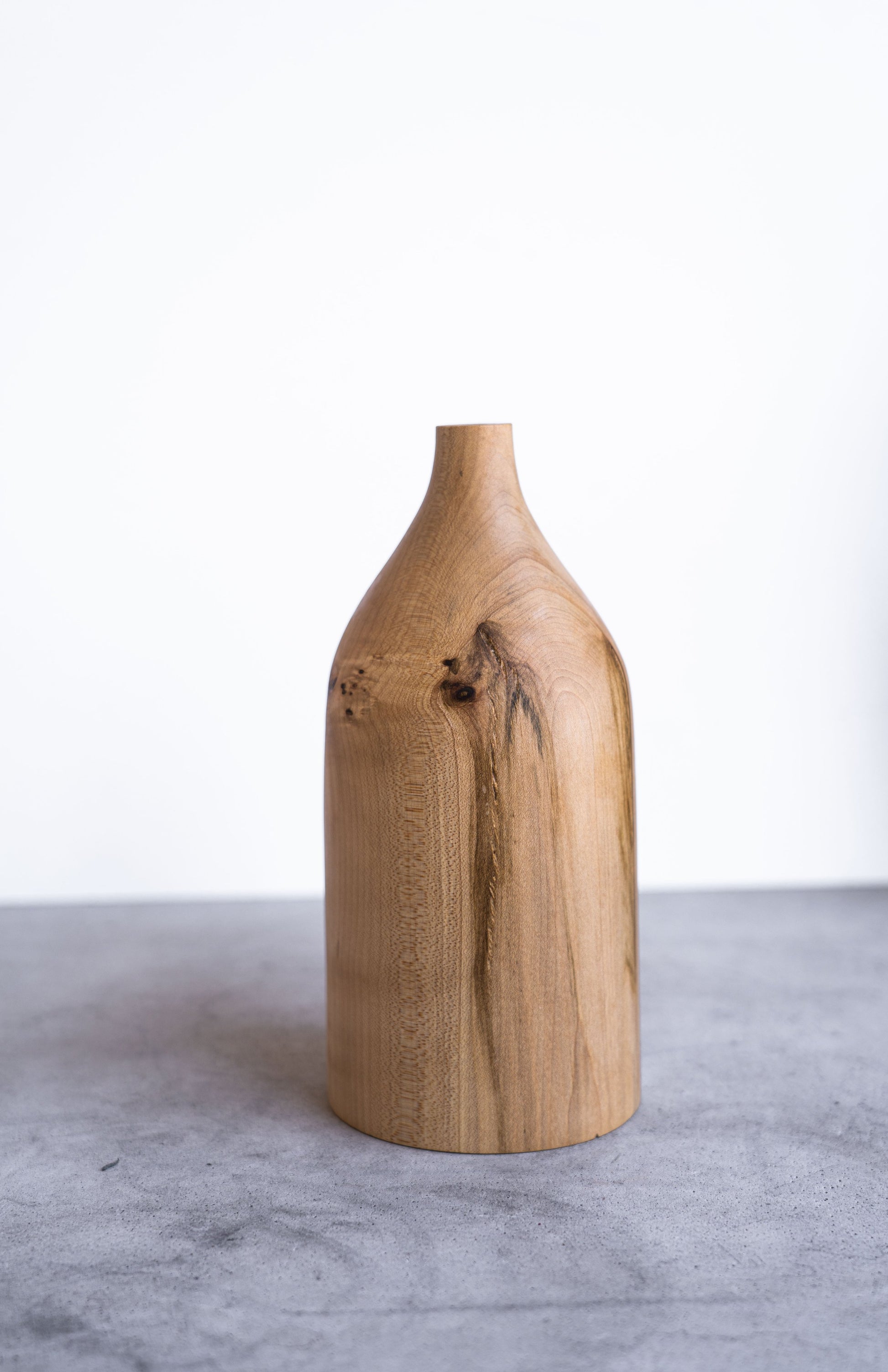 The vase's sleek and graceful bottle shape adds a touch of sophistication to your home decor. Its smooth finish accentuates the natural wood grain, making it a versatile piece that complements a variety of interior styles, from rustic to modern.