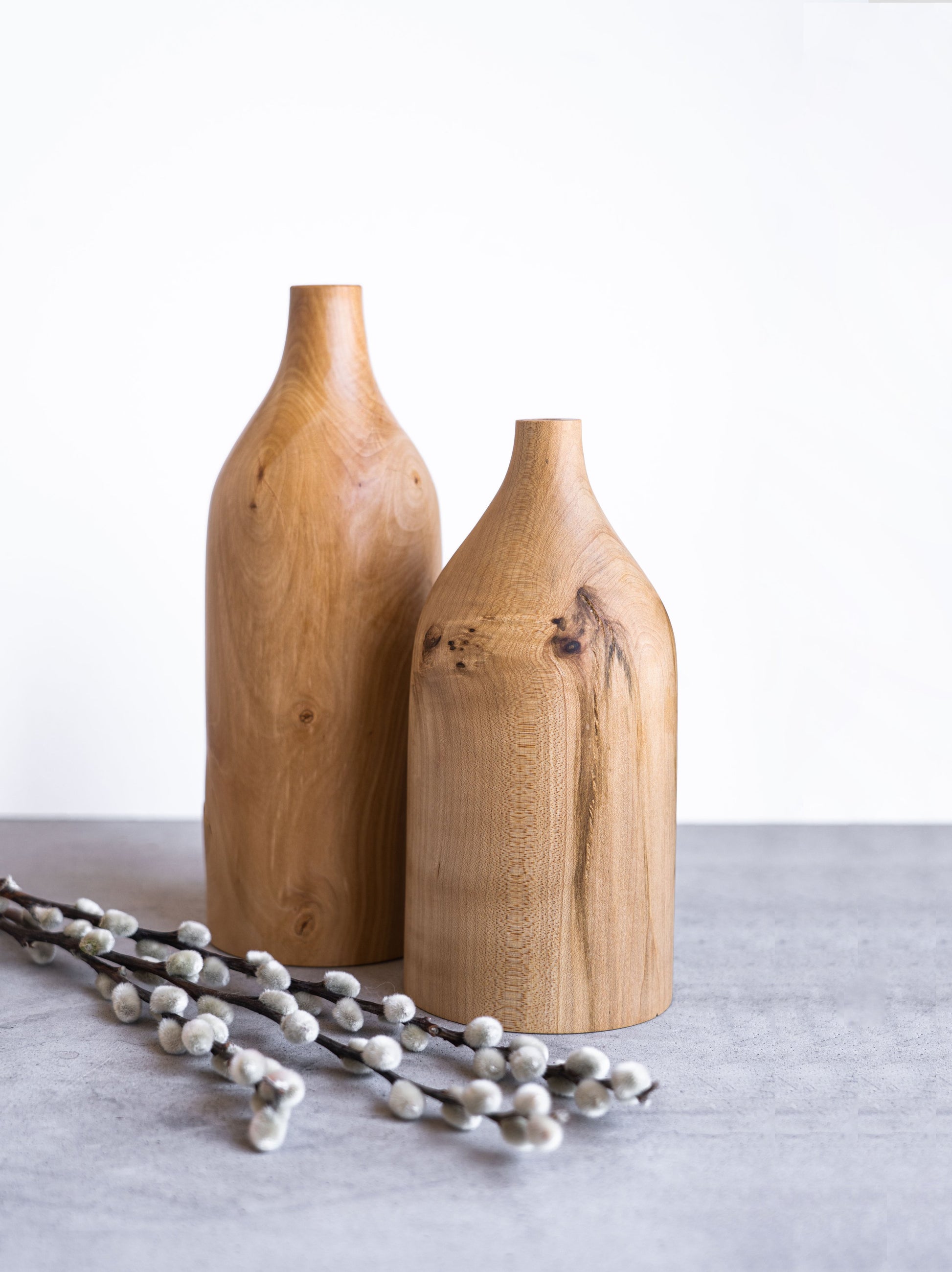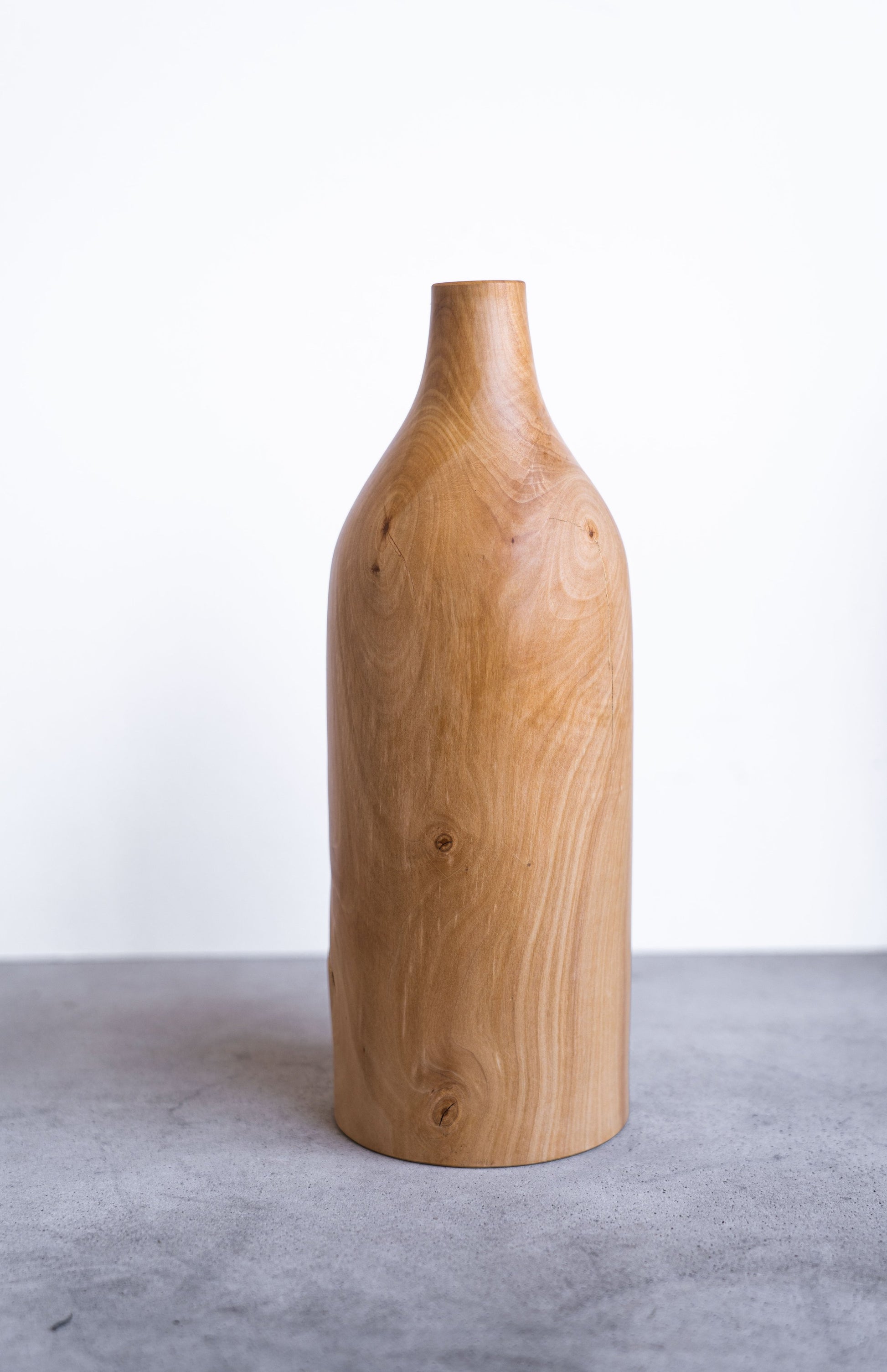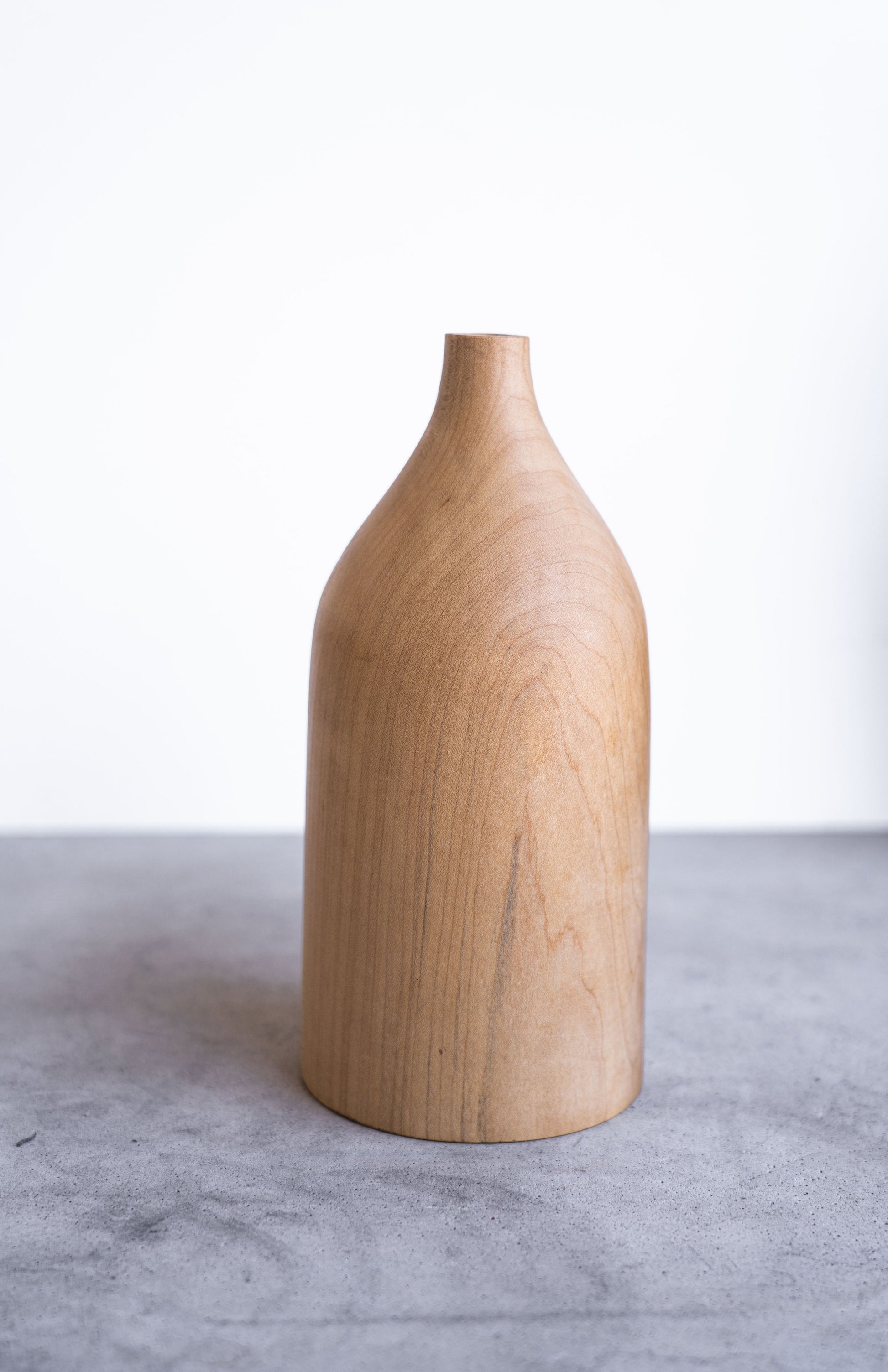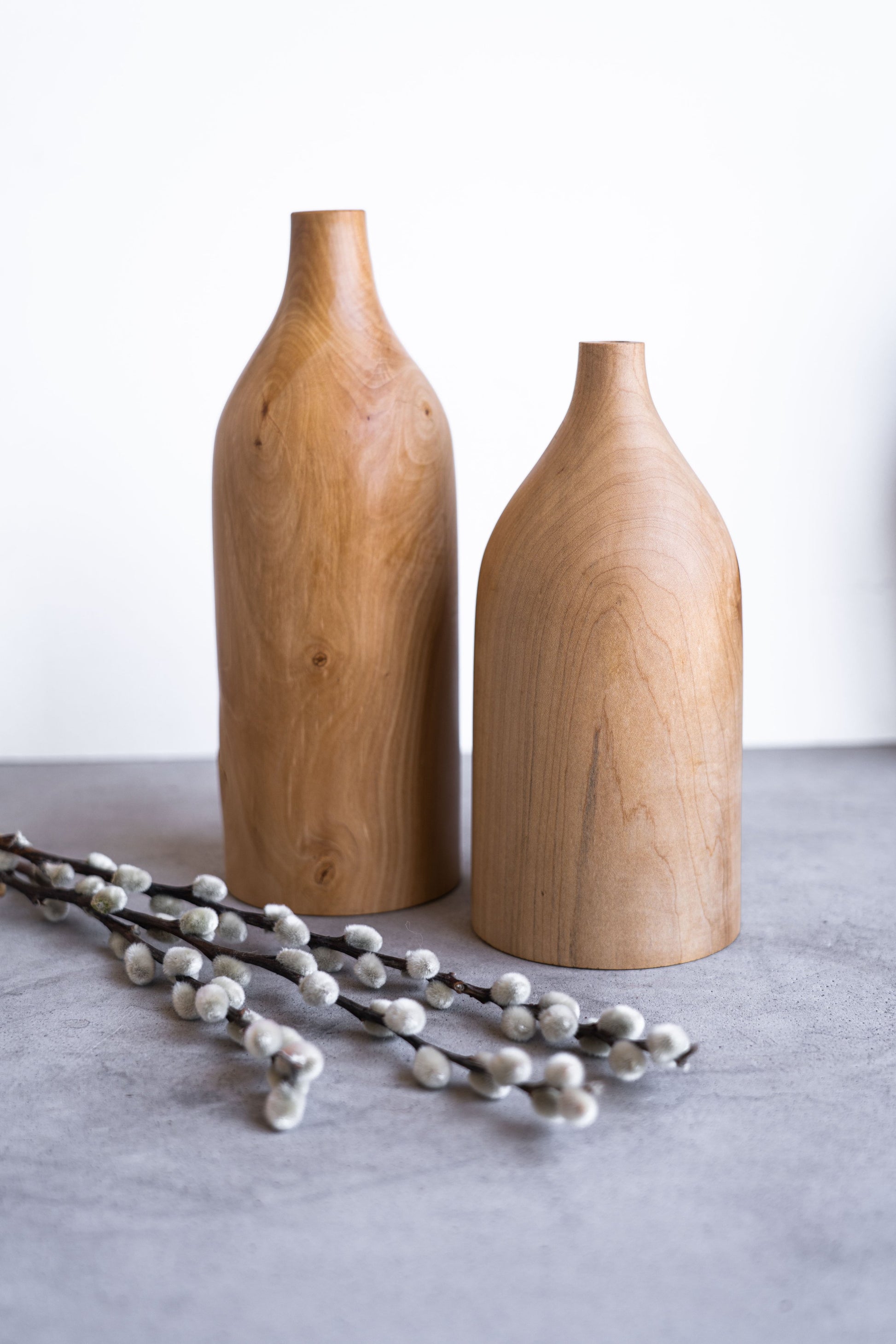 The vase's sleek and graceful bottle shape adds a touch of sophistication to your home decor. Its smooth finish accentuates the natural wood grain, making it a versatile piece that complements a variety of interior styles, from rustic to modern.