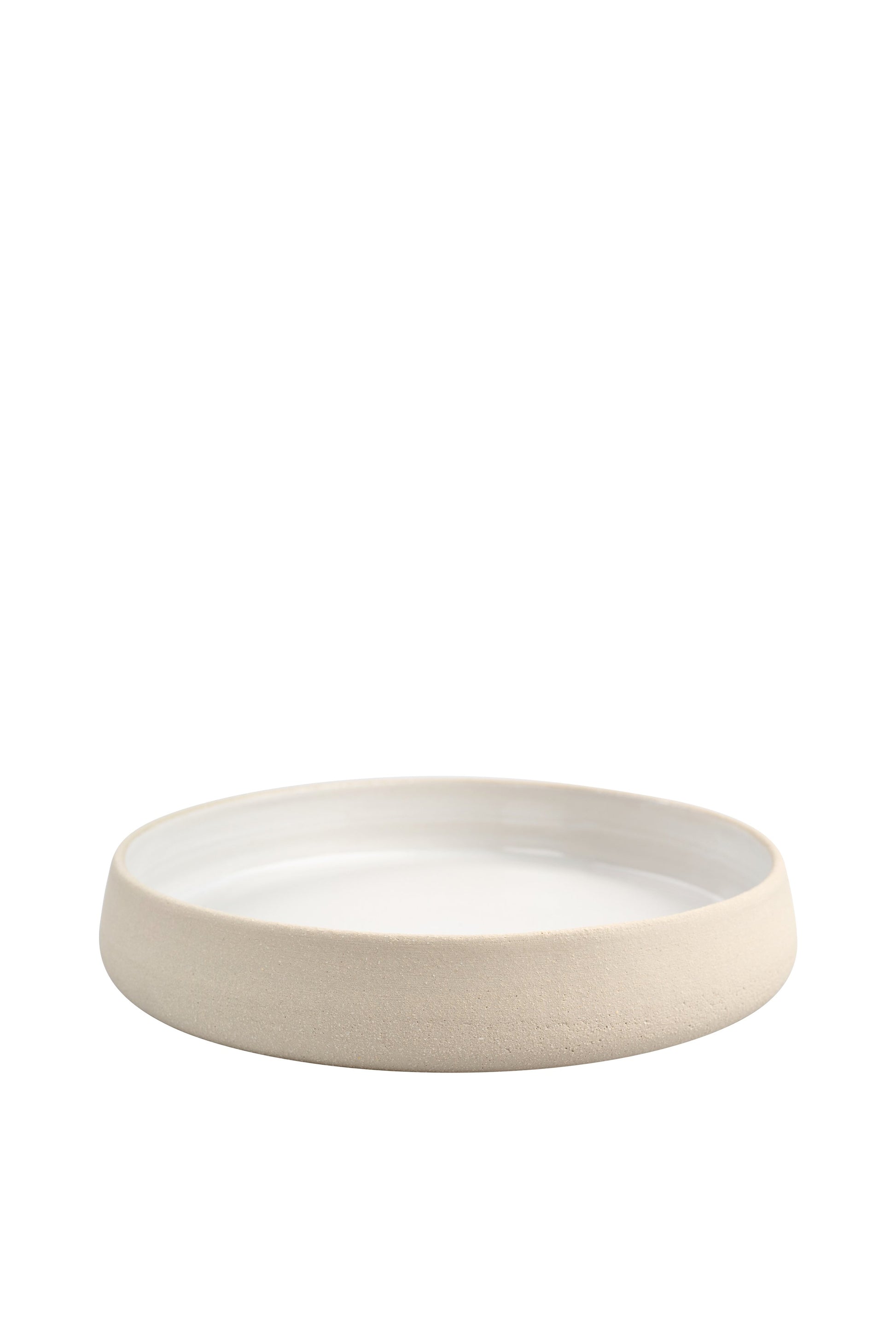 This is the most honest ceramic ware we have ever produced - exposed rough stoneware shows occasional signs of the artisans' fingers that were left during the hand-throwing process. The high-sided plate style will add a restaurant-level serving to your everyday meals. Polished, a little bit rough texture from the outside and glossy white glaze on the inside - a perfect combination of rustic style and functional meaning.